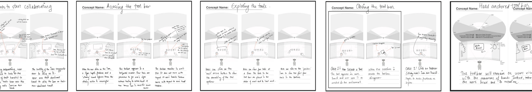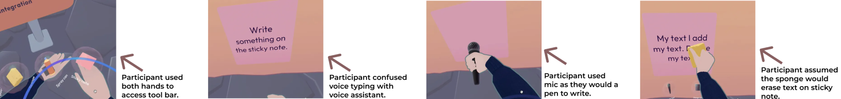 - The current design requires users to look at the back of their hands to activate the toolbar, which many found non-intuitive. Additionally, because the toolbar is anchored to the user’s view, it disappears with certain head movements, disrupting the workflow and causing frustration.